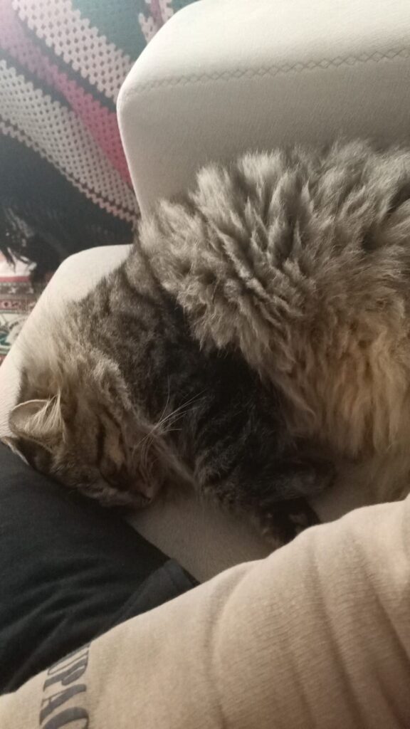 Seslere uyanmış herhalde. Otururken bir anda üstüme atladı. Miyavlaya miyavlaya kafasını sevdirdi, sonra da senelerdir ben bakıyormuşum gibi üstüme yattı uyudu. Hiçbir şey yapmadan öylece durduk biraz. O masumluğu, hiç bilmeden bana güvenmesi, bir de aşırı tatlı olması… İçim tekrardan kıpırdadı. Dedim: ‘’Tamam. Bundan sonra benim bebemsin. Seni bebem ilan ediyorum.’’